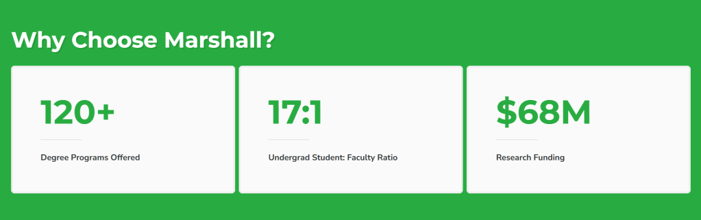 I worked under Marshall’s webmaster developing plugins, shortcodes, Gutenberg blocks, and pages for various WordPress sites. Doing so expanded on my computer science major by giving me hands-on experience programming in PHP, HTML, CSS, and JavaScript. My most recent project had me migrating pages for the Marshall University Foundation from WordPress to Statamic; however, those 50+ pages are still under development and are not publicly available (as of June 2025).